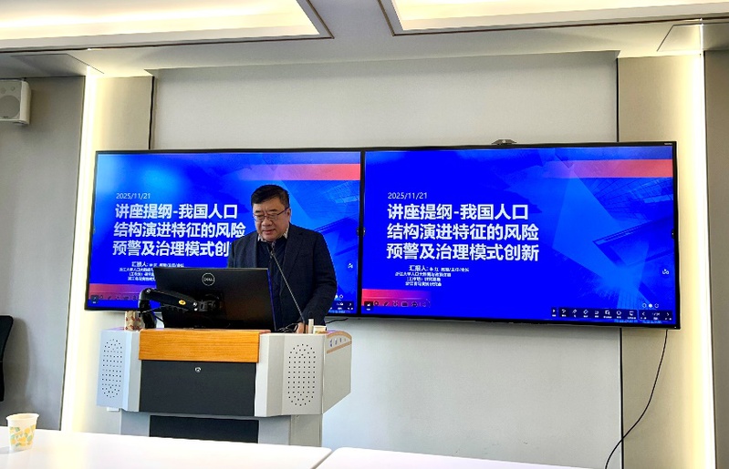 2025年11月21日下午,浙江大学公共管理学院米红教授在河海大学江宁校区厚学楼210教室为公共管理学院师生带来一场主题为《我国人口结构演进特征的风险预警及治理模式创新》的学术报告。讲座由社会保障系主任陈际华教授主持,韩振燕教授、张鑫教授、王欢副教授、于萌副教授、王锴、李新恒等老师以及学院各专业本科生、硕士生共同参与了学习。