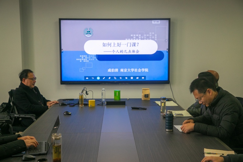 2025年11月27日,我院在厚学楼909会议室举办了教师教学专项培训暨基层教学组织教研活动之一流课程建设讲座。中国社会学会副会长、江苏省社会学会会长,教育部高等学校社会学类专业教学指导委员会副主任委员、南京大学社会学院成伯清教授受邀为我院教师作“如何上好一门课?”的专题讲座。本次讲座活动由公共管理学院副院长陈莉教授主持,公共管理学院各系所教师骨干参加了本次讲座并进行了深入交流。