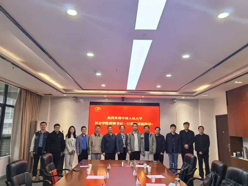 4月13日下午,中国人民大学社会学院党委书记唐颖率队访问我院,围绕学科建设与“十五五”发展开展专题交流。学院党委书记吴宝海、院长朱新华、副院长陈涛、社会学系主任顾金土、社会学系副主任李晓斐、社会学党支部副书记邵占鹏、社会工作与社会政策研究所副所长丁百仁等参加交流。